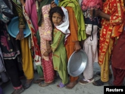 Суккур шаарындагы качкындар лагеринде азык-түлүккө кезекке турган адамдар. Синд првоинциясы. 27-август 2010